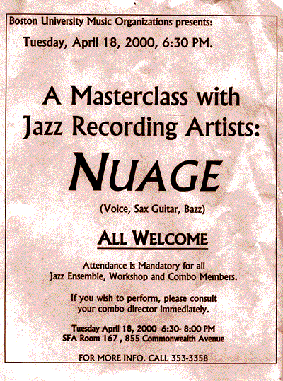Nuage did a series of masterclasses in Boston in spring 2000, at the Boston University and at Boston College: