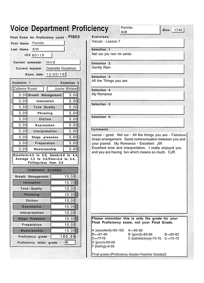 Proficiency 3rd semester, Berklee College of Music, December 20, 1999