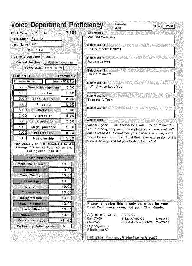 Proficiency 4th semester, Berklee College of Music, December 20, 1999