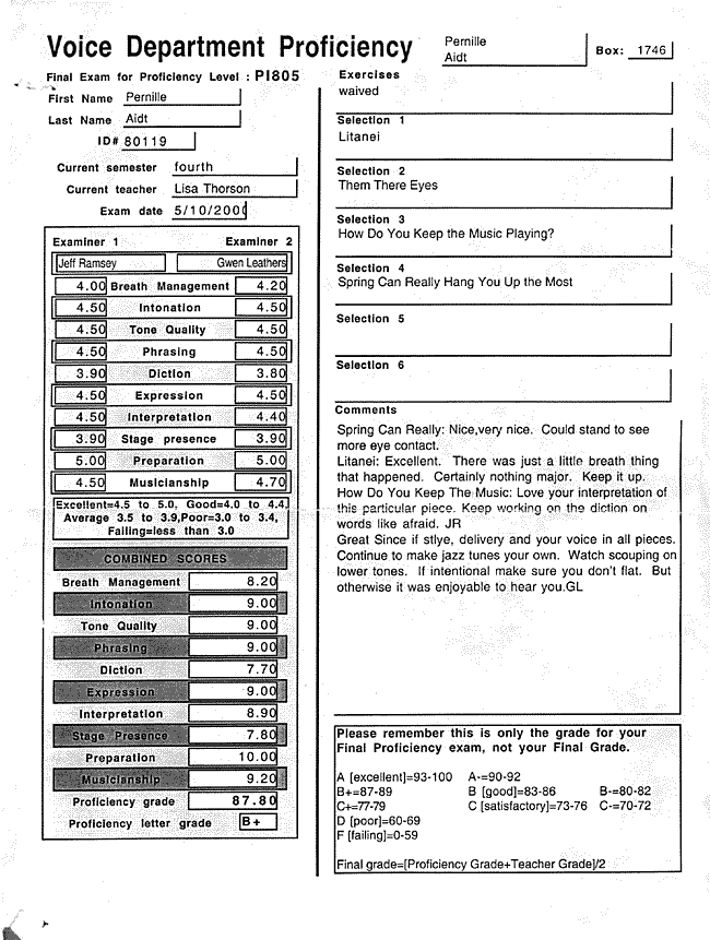 Proficiency 5th semester, Berklee College of Music, May 10, 2000