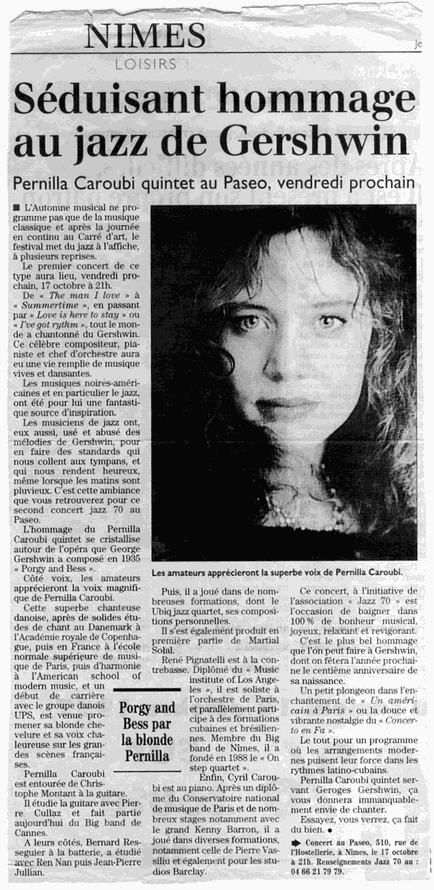 The homage to Gershwin by the Pernilla Caroubi Quintet is spinning