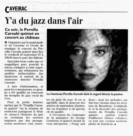 heard at all the theatres of Broadway. The Pernilla Caroubi Quintet's