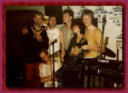UPS on tour: After a gig in Horsens in 1984. From left to right: Henrik, Jens (below),