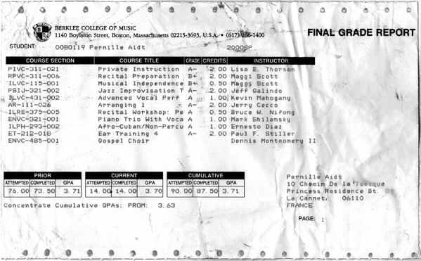 Final Grade Report, 5th semester, Berklee College of Music, May 2000
